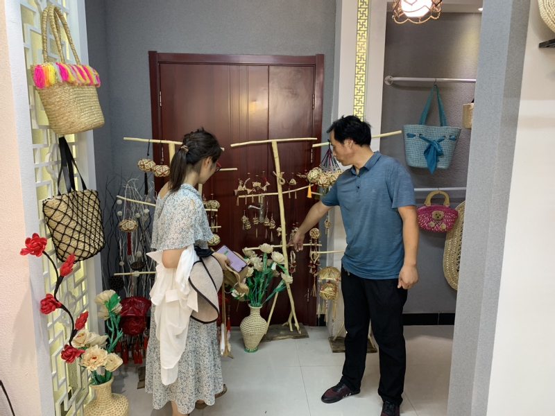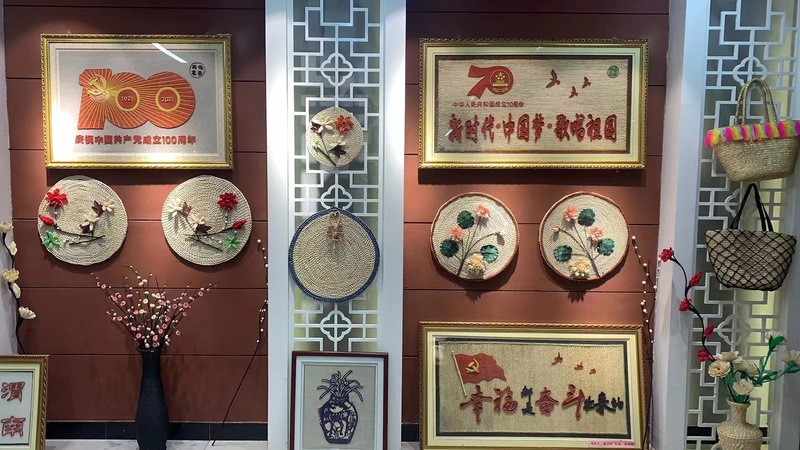 我们首先参观了展示厅,厅内陈列着各种惟妙惟肖、栩栩如生的动物、花鸟、亭台楼阁等工艺品,产品色泽鲜艳、品种繁多、大小规格不一,有成套的,有单个的、形状不同、图案千变万化。工作人员告诉我们:巧娘草编文化已经是省级非物质文化遗产项目,也是当地非常有特色的民间手工艺品,合作社创作的草编工艺品荣获多个国家及省级奖项,打响了区域品牌,带动了当地经济发展,实现了农民增收致富。