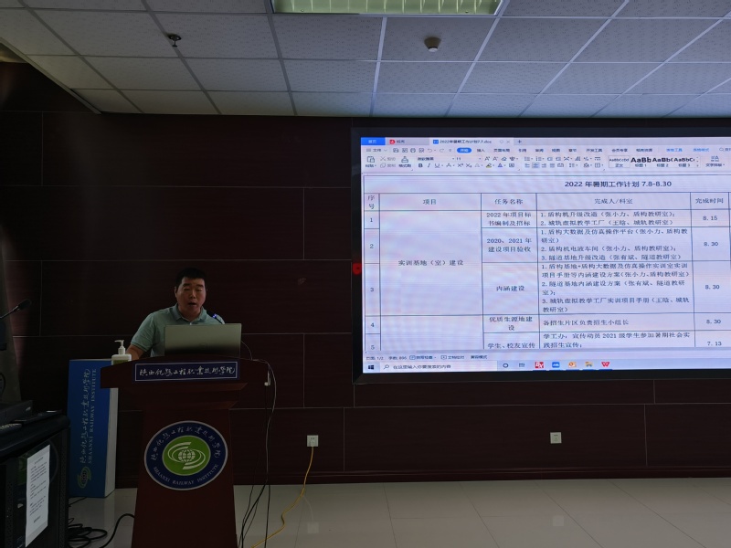 为高质量完成“双高”及各项建设任务,稳步推进公司各项工作,7月7日上午,伟德体育在高新校区行政北楼三楼会议室组织召开本学期工作总结暨暑期工作部署会,全体教职工参会,会议由副经理贾良主持。