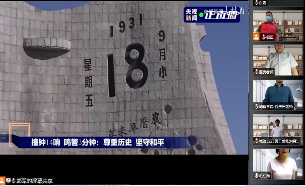 会议共分两大主题进行。第一阶段主题为“以史为鉴,强我中华”。首先与会师生共同观看员工朗诵作品《91年前的这一天,我们永远铭记》。随后,全体成员起立并集体默哀三分钟,以此活动纪念“九一八事变”91周年。