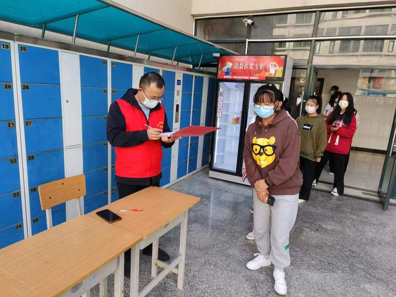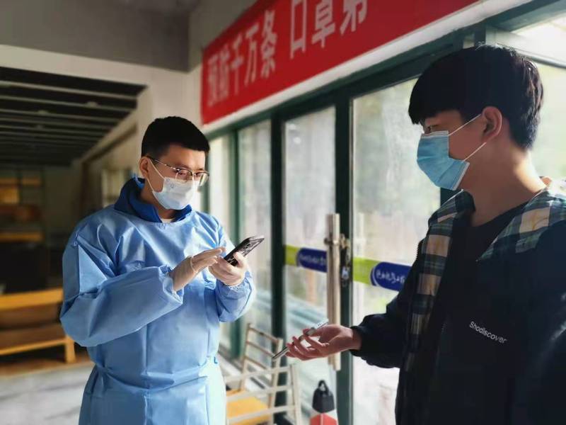 核酸检测期间,党总支书记任庆国,副经理贾良多次来到核酸检测现场,查看核酸检测落实情况,组织召开现场工作会,研讨核酸检测存在的问题,及时解决,不断优化,最终形成了以宿舍为单元检测、登记、核对的行之有效的核酸检测实施方案,保证员工有序、快速、安全的完成核酸检测。在校教工党员先锋队担任扫码志愿者或维持现场秩序,充分发挥教师党员的先锋作用。同时要求员工在完成核酸后第一时间进行易班登记,通过易班登记数据、现场检测扫码数据、公司实有人数进行三项对比,形成数据闭环,确保所有应检人员按时完成核酸检测。针对隔离员工,由教师党员先锋带队,上门进行核酸检测,筑牢疫情防控安全壁垒。