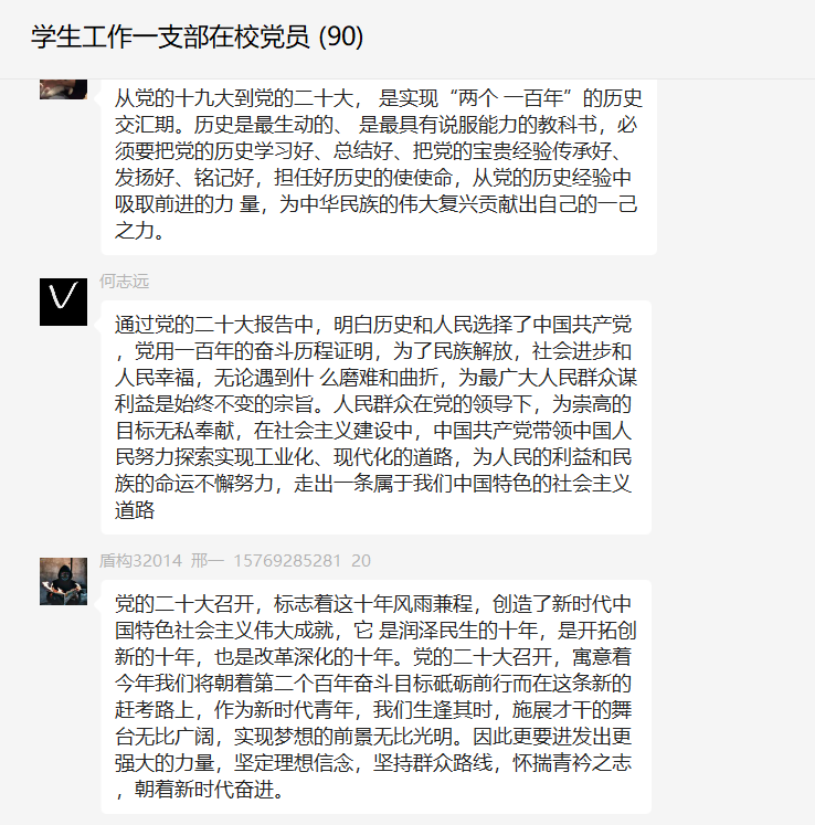 会上,支部党员通过微信群,抒发了学习二十大报告后的心得体会。与会党员表示,要紧跟党的步伐,一步一个脚印,听党指挥,为党和人民战斗,成为党和国家真正所需的忠诚儿女。(蒋萌)