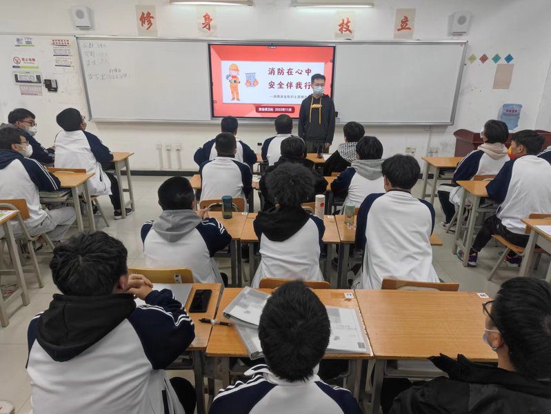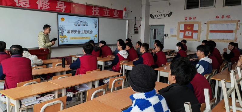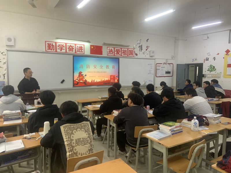 班会上,各班班主任向同学们介绍了冬季宿舍容易出现的易燃物,强调了违规电器的危害性,同时为同学们介绍了一些常见的灭火方法,和遇到火灾时的处理方法,帮助同学们规避安全风险,提高安全意识。