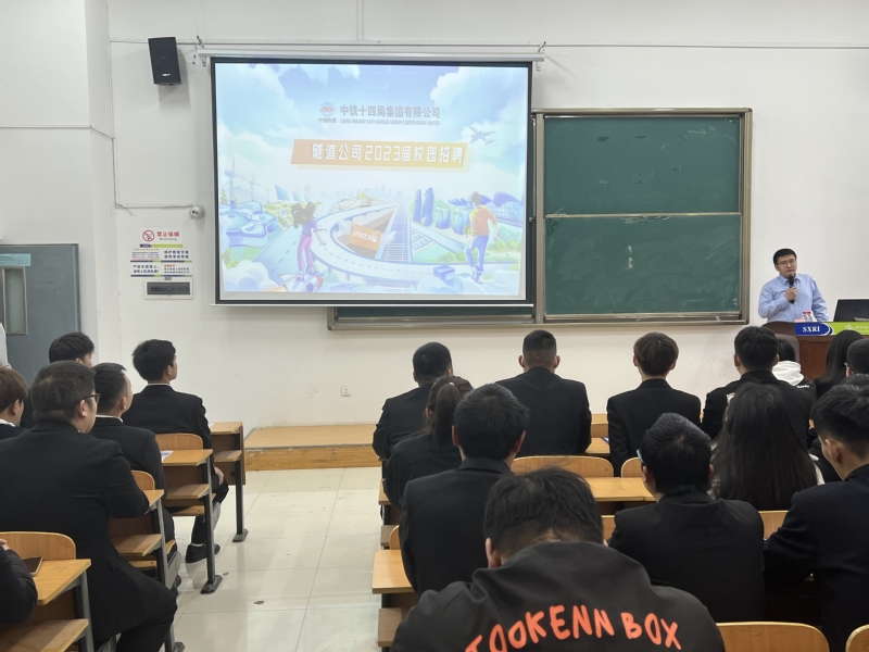 会上,任庆国热烈欢迎十四局隧道公司前来参会的三位领导并对他们做了介绍。他表示,十四局隧道公司有着强大的施工技术力量和精良的设备,综合施工技术和能力在国内处于领先水平。希望同学们抓住机遇,珍惜机会,积极求职,不负青春不负韶华。