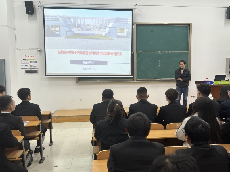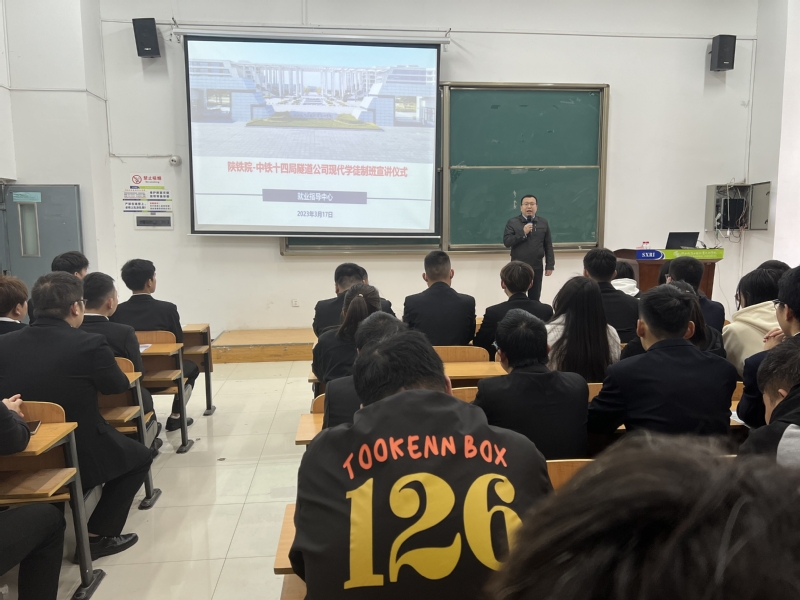 3月17日上午,陕铁院——中铁十四局隧道公司现代学徒制班宣讲仪式及面试在高新校区GB120招聘室举行。十四局隧道公司企业人力资源部部长王松涛、副部长李梦石等三位领导来校宣讲,宣讲会由任庆国书记主持,全校三百多名员工参加了宣讲会。