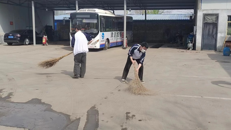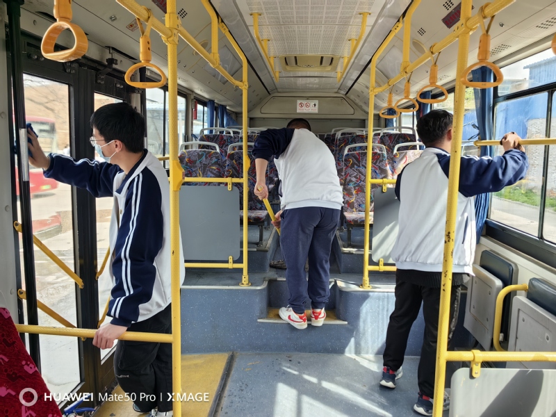 到达现场后,在现场工作人员的引领下,志愿者们立即就现场情况分为三个小组,并如火如荼地开始了。两组志愿者主要对公交内部进行擦拭,对地面进行清洁。另一组志愿者主要对车身外部进行擦拭以及清理地缝里的烟头,在三组志愿者的齐心协力下,公交车变得焕然一新。