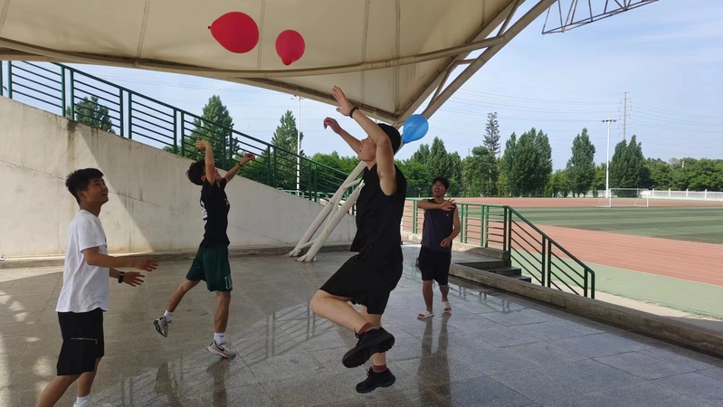 活动伊始,辅导员王文颀老师讲解了活动目的、内容及注意事项,为活动正式开始拉开了帷幕。“水枪大战”让师生尽情享受,尽情释放,尽情欢笑,不但增进了彼此的感情,也让员工感受到了集体的温暖;“气球大战”、“红蓝对抗”让员工感受到团队的凝聚力,激发起团队精神。活动中员工们尽情的嬉戏玩闹,喜悦洋溢在每个人的脸上,校园宛如一片欢乐的海洋。