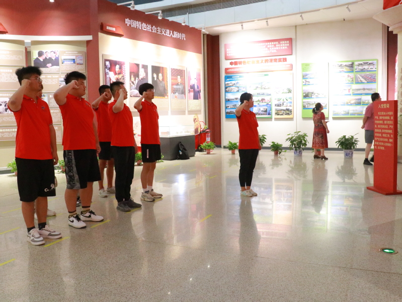 走到党旗下时,实践队指导老师马源源带领我们在党旗下庄严宣誓:“我志愿加入中国共产党,拥护党的纲领,遵守党的章程,履行党员义务,执行党的决定,严守党的纪律,保守党的秘密,对党忠诚,积极工作,为共产主义奋斗终身,随时准备为党和人民牺牲一切,永不叛党。”