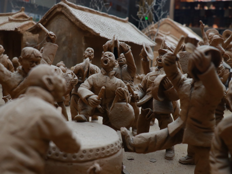 接着我们来到传统技艺与民俗展区,这里全是一些精美的陶瓷作品,和一些泥人作品,讲解员给我们详细讲解了这些东西的制作过程。一个个泥人生动形象,向我们展示出了过去渭南人的日常生活场景。