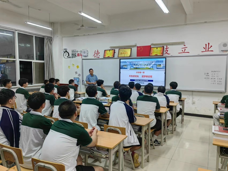 新学期,新起点,新征程。为引导全体员工以崭新的姿态和饱满的精神投入到新学期的学习生活中,9月4日晚,伟德体育邀请发展规划处处长吴海光、科技处副处长赵增逊和公司经理毛红梅、党总支书记任庆国、副经理贾良,各年级各班班主任、辅导员深入班级,召开“开学第一课”主题班会。