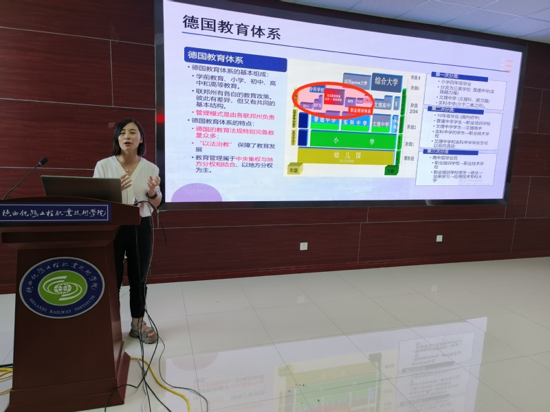 会上安排暑期赴德研修、教师赴企业生产性实践、1+X证书团队能力提升及轨道交通骨干团队培训班等7名教师代表上台发言,分别就各自参加培训项目的背景意义、活动安排、实践项目及收获成效方面进行细致汇报,以丰富多彩的内容展现培训成果,分享心得体会。据统计,暑期公司共计派出近80人次赴外开展培训交流活动,遍及国内外15地市,涉及党建交流、职教理念、虚拟仿真开发、信息化资源建设、行业先进技术、企业生产实践、特种装备制造等多个领域。