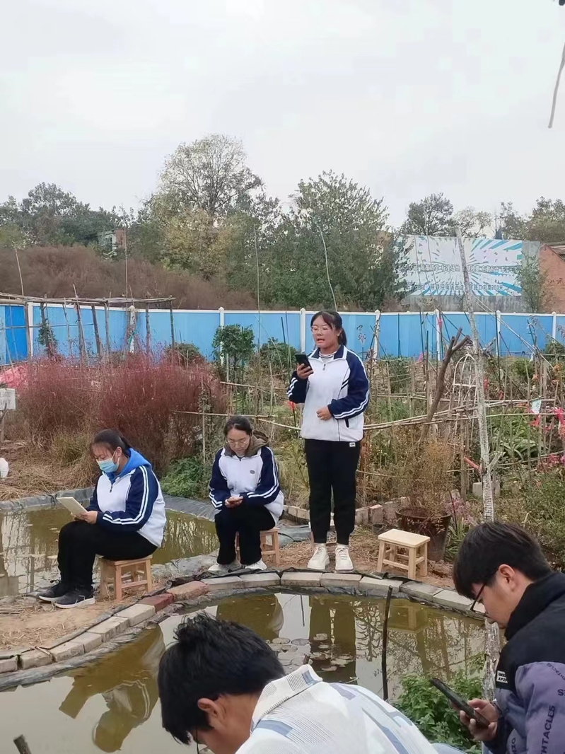 活动由蒋萌老师“引诗”开始,蒋老师从诗的起源讲到中国诗歌的“悲秋”传统,高屋建瓴的讲解条理清晰,引人入胜。“采诗”环节,同学们选择自己喜爱的诗歌进行了吟诵,朗朗的诵读声和眼前的一汪湖水相得益彰,绕梁三日,久久不散。王静老师从诗歌在社会生活中发挥“兴观群怨“的功能和李清照诗歌的艺术风格和影响力进行了“说诗”,最后,在伟德体育劳动基地的万花丛中,师生共同游园“觅诗”。