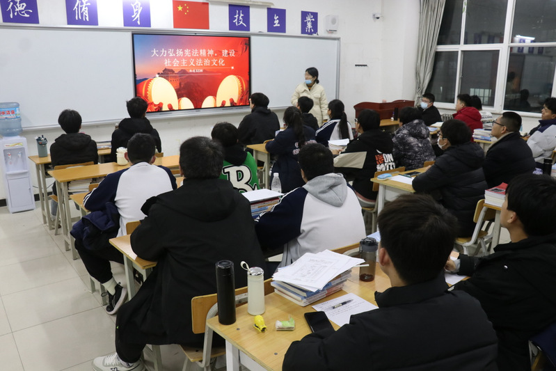 班会上各班班主任完善了员工的宪法知识,提高员工的法律意识。启发了同学们对宪法有了新的认识,宪法与生活息息相关,我们应该知道什么事应该做,什么事不应该做,并且规范自己的行为举止,做到知法、懂法、守法。