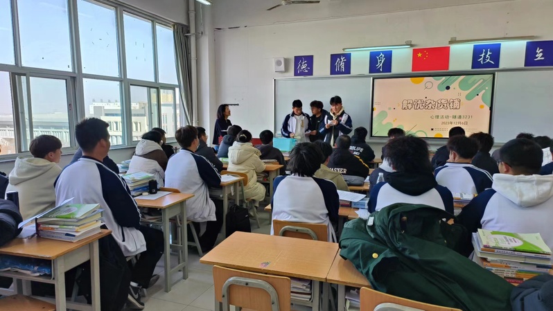 2023年12月6日下午,隧道3231班在高新校区GB518举办了一场别开生面的心理活动,辅导员王静老师参加活动。