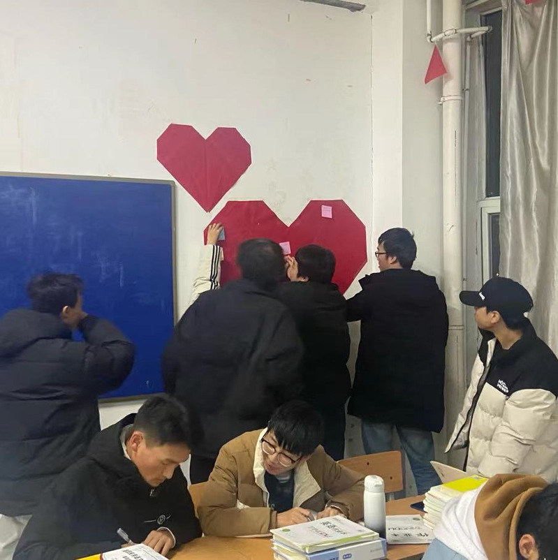 2023年12月5日为了缓解员工的心理压力,正确调解自己的情绪,短暂远离网络走进校园,辅导员韩俨老师带来轨道3235班员工在教室GB516组织活动,通过“心语心愿墙”心理活动来释放学习和生活中的压力。