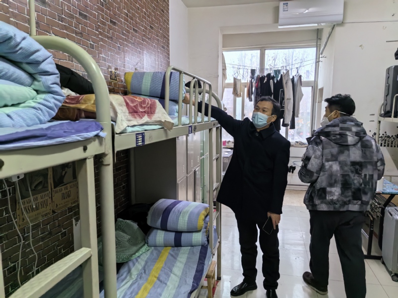 为提升公司公寓管理质量,12月11日上午,公司组织开展第14周卫生联合大检查,公司党总支书记任庆国、学工班主任蒋萌带队,全体辅导员参加,对公司所在一号、三号公寓的卫生、消防安全进行了全面检查,看望了因病请假的员工,嘱咐他们按时吃药,做好宿舍的通风和消毒。(杨果)