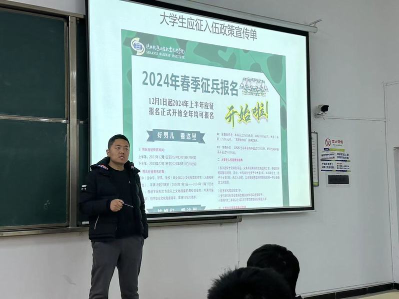 为了增强员工对应征入伍政策的了解,提高献身国防意识,动员广老员工踊跃参军,积极营造参军报国的良好氛围。12月12日,公司组织大一新生在GB102开展征兵政策宣讲活动。活动由赵文凯老师组织,旨在鼓励员工积极参军入伍,强化同学们服兵役的责任感和参军保卫祖国的意识。