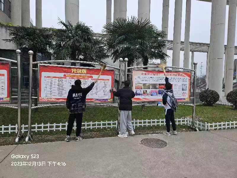 校园是我们学习和生活的场所,校园卫生也时刻影响着员工的日常生活。12月13日为了营造一个干净、整洁的校园环境,我们铁成轨道3231班决定组织一次的义务打扫宣传栏活动。此次活动旨在提高员工的环保意识,同时加强公司的文化建设。