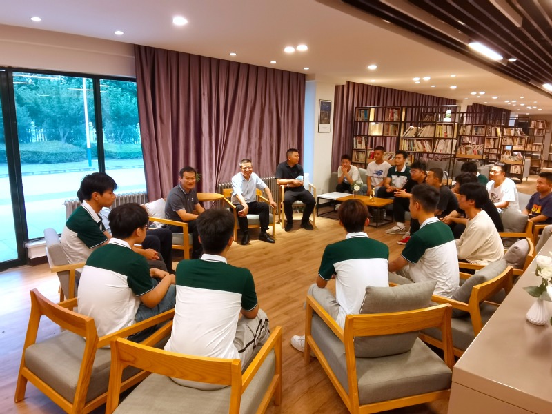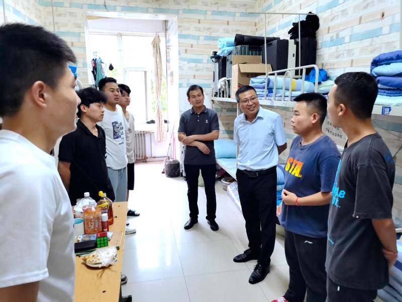 6月28日晚,刘明学副董事长、国际公司经理李兵方一行来到城轨公司一年级员工宿舍,与员工亲切交流,关心同学们的学习生活情况。