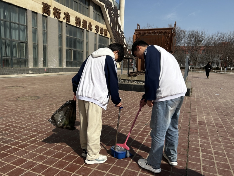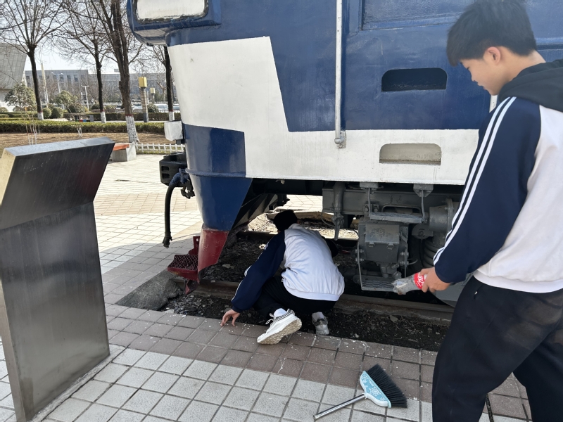 活动当天,阳光明媚,志愿者们热情高涨。他们身穿统一的校服,手持清洁工具,按照抽签的结果分组行动。在高铁实训基地,志愿者们认真清扫了车间和轨道周围的垃圾,确保了实训环境的整洁和安全;在大柱子广场,志愿者们仔细擦拭了广场上的立牌;在自行车摆放区,志愿者们整齐地摆放了乱停乱放的自行车,让校园交通更加有序;在巴山鼎和火车头,志愿者们清理了周围的垃圾,维护了校园的文化氛围。