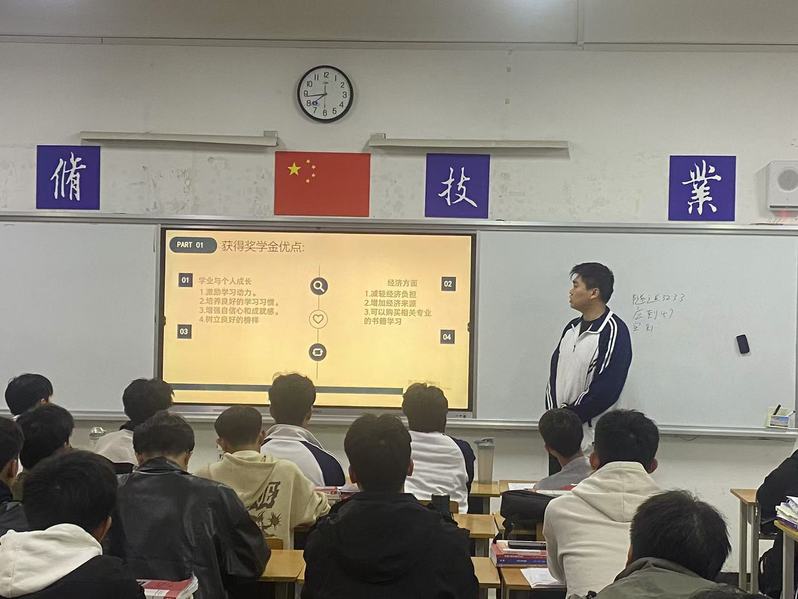 会上,班主任和班长首先介绍了2023——2024学年校奖学金、优学优干和优秀班集体的获奖情况和班级间横向对比,并对部分同学未能评得奖学金的原因进行了深入分析。有的同学是因为学习成绩不够突出,有的是在社会实践方面有所欠缺,还有的是在创新能力方面有待提高。这些分析如同一面镜子,让同学们清晰地看到了自己的不足之处。同时,老师和班长也鼓励大家不要气馁,要以此次分析会为契机,找准自己的短板,有针对性地进行改进和提升。之后,老师和班长从“德、智、体、能”4个方面细致地讲解了评定要求与标准。同学们全神贯注地聆听,不时低头记录。通过这一讲解,大家对奖学金的评定和意义有了更为深刻的认识,也明确了自己未来努力的方向。在会议的尾声,未能评上奖学金的同学进行了深刻的自我总结。他们坦诚地反思自己在学习、生活和实践中的不足,表达了对未来的决心和信心。有的同学表示,将更加努力地学习专业知识,提高自己的学习成绩;有的同学决定积极参加社会实践活动,锻炼自己的综合能力;还有的同学立志在创新方面有所突破,为自己的老员工活增添一抹亮丽的色彩。